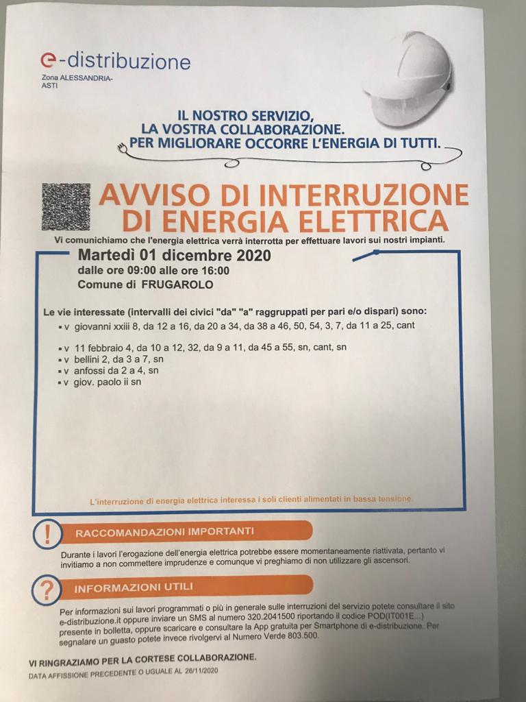 In allegato comunicazione ENEL DISTRIBUZIONE.