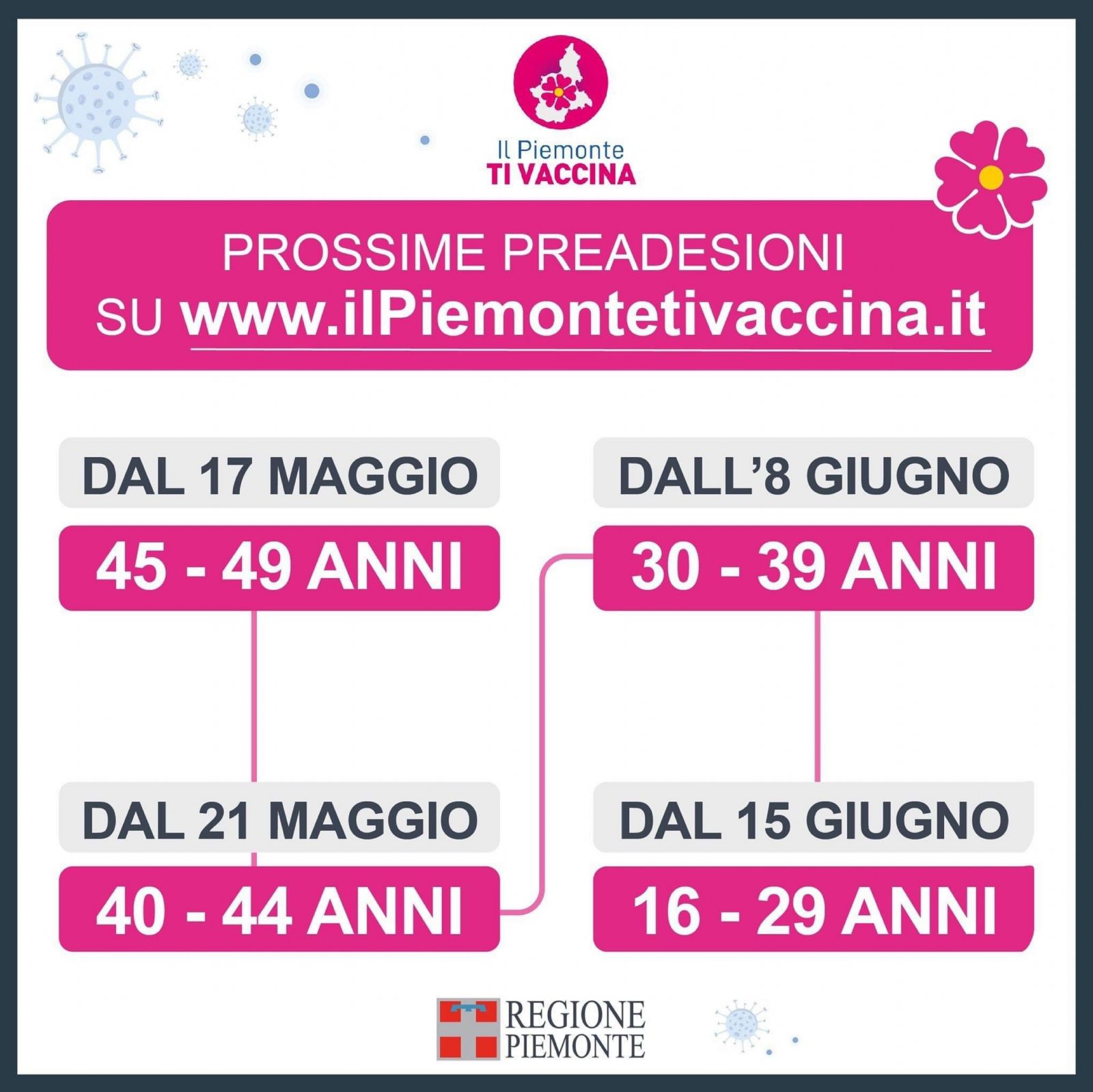 La Regione Piemonte ha pubblicato il calendario per le preadesioni per le vaccinazioni COVID