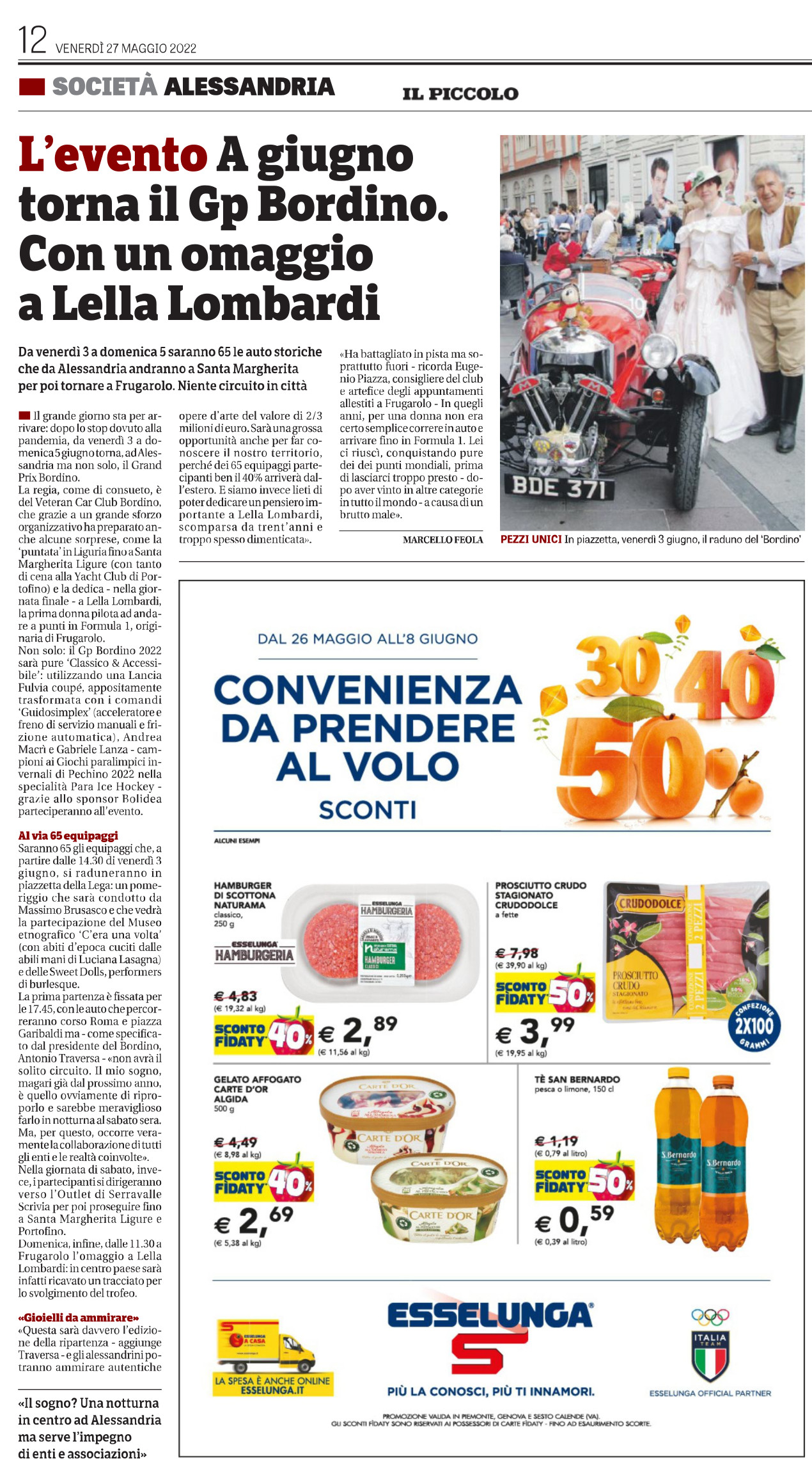 Il club P. Bordino di Alessandria, organizzatore della rievocazione, ha inserito nel programma di questa edizione una tappa a Frugarolo per celebrare ed omaggiare la ns. concittadina Lella Lombardi, prima donna in formula 1 ad andare a punti.