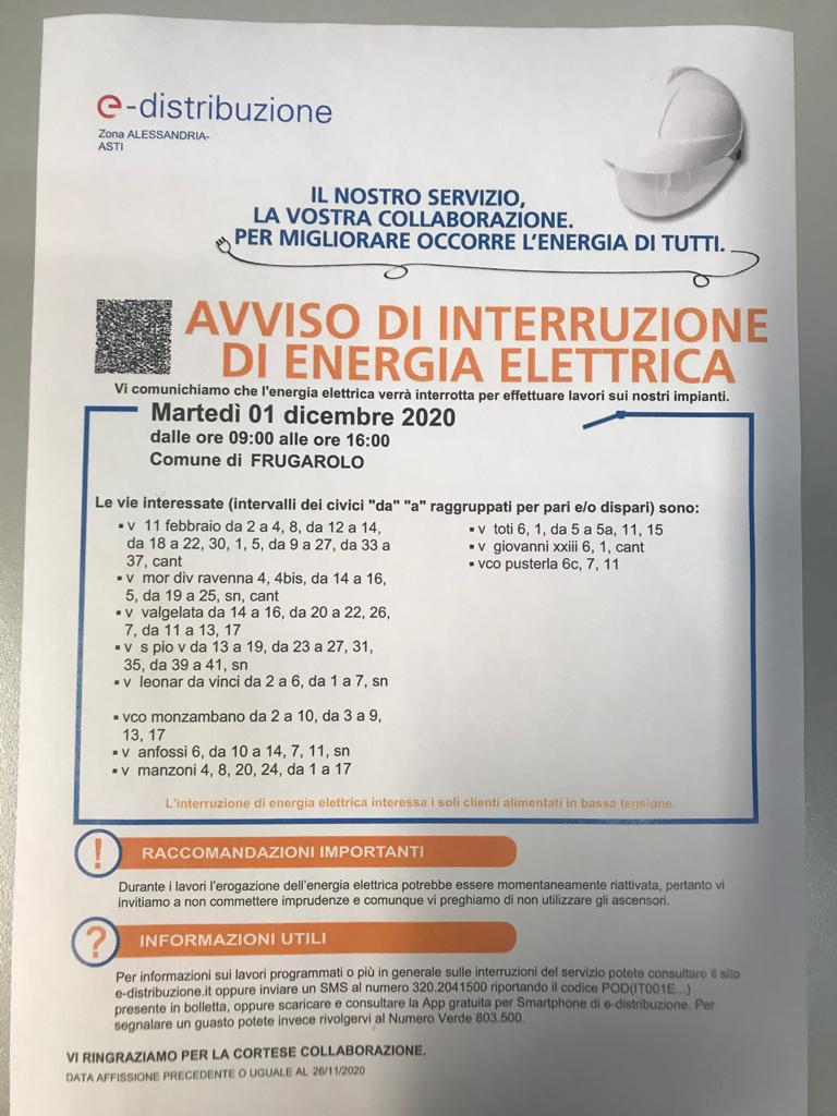 In allegato comunicazione ENEL DISTRIBUZIONE.